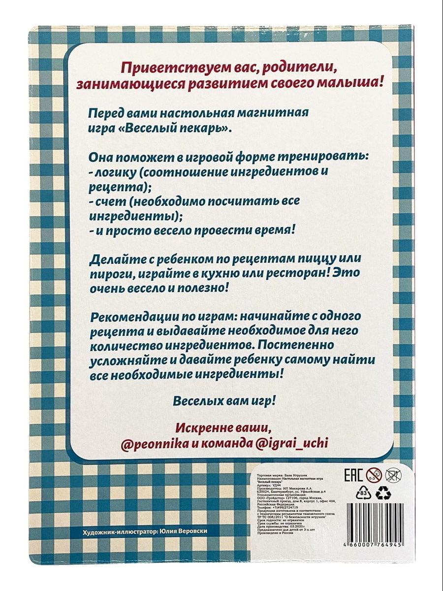 Веселый пекарь, магнитная игра