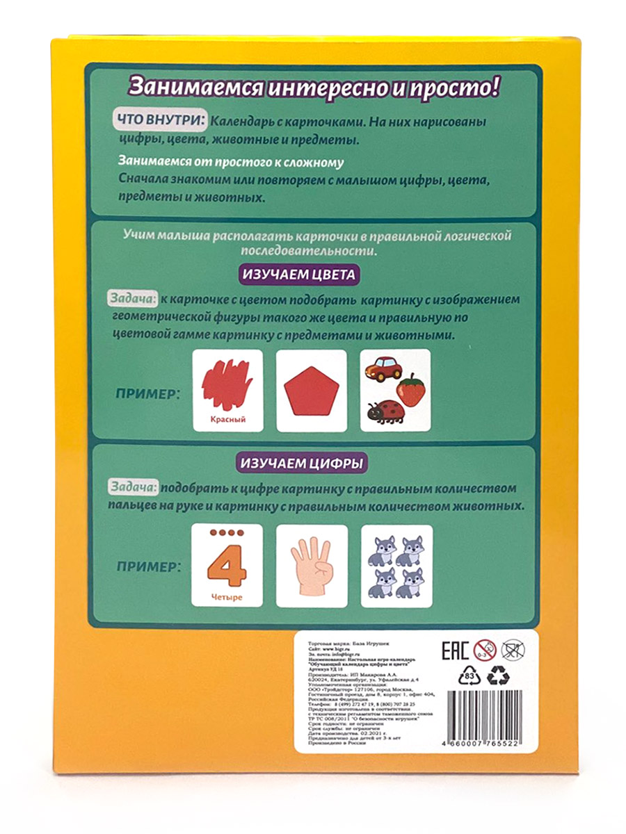 Цифры и Цвета, обучающий календарь