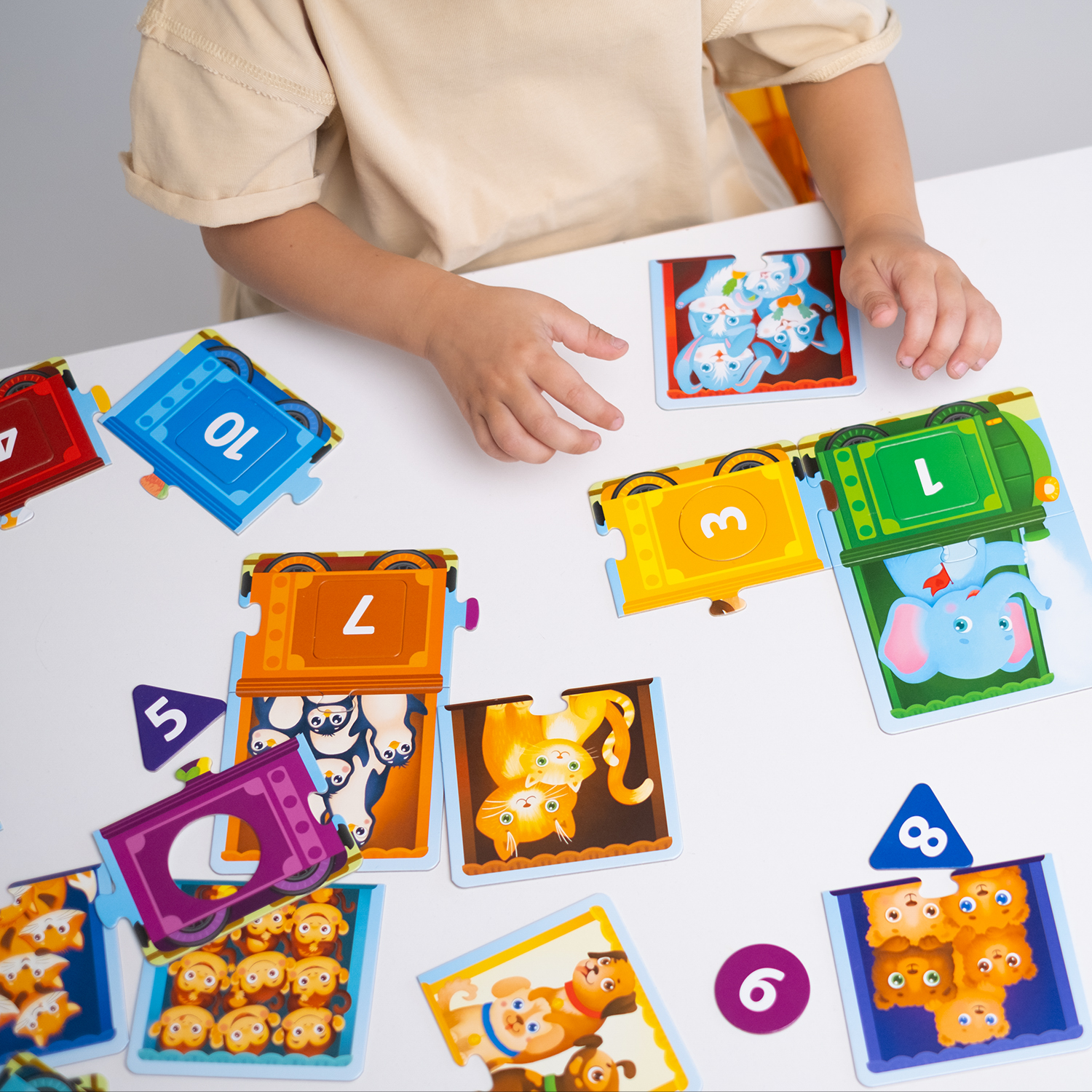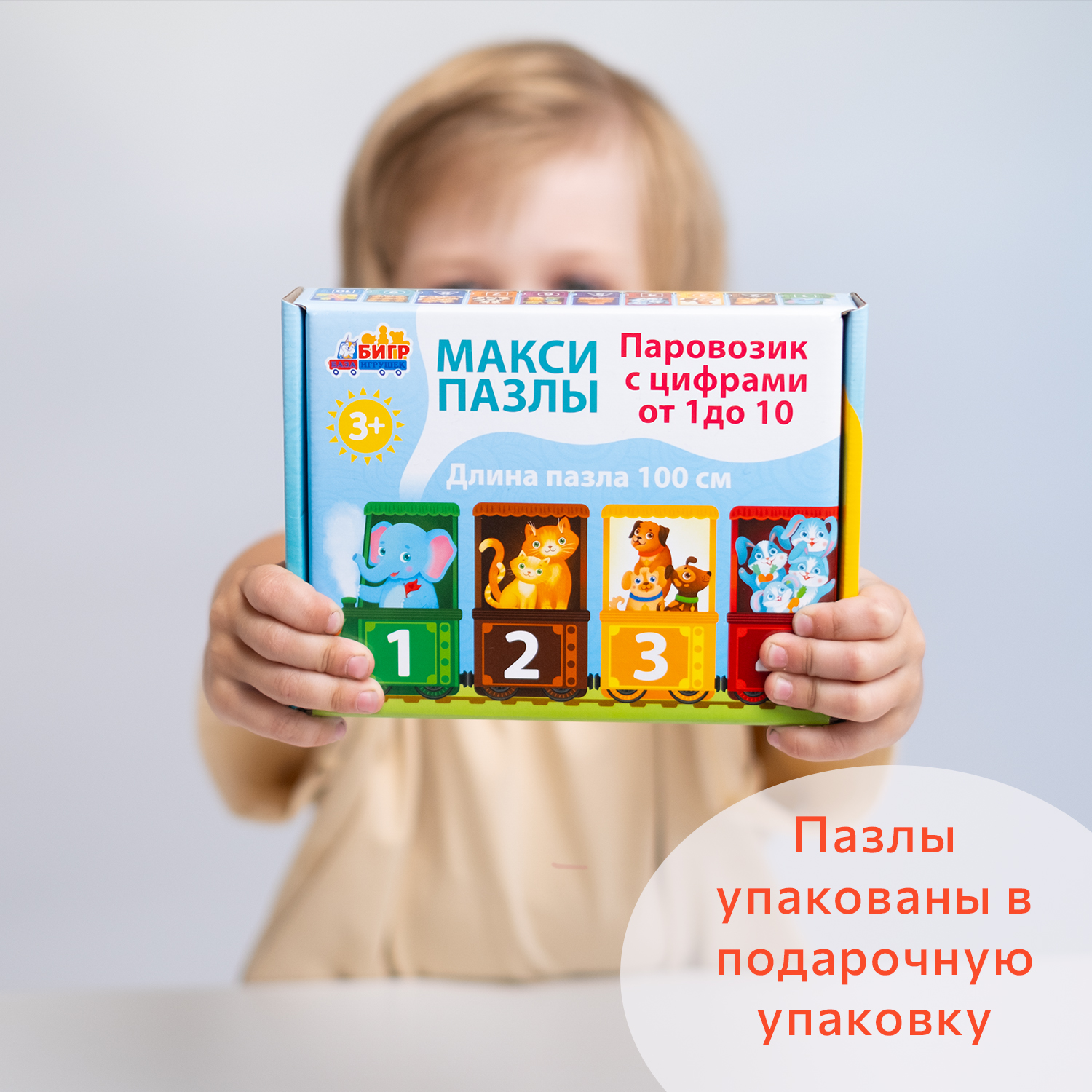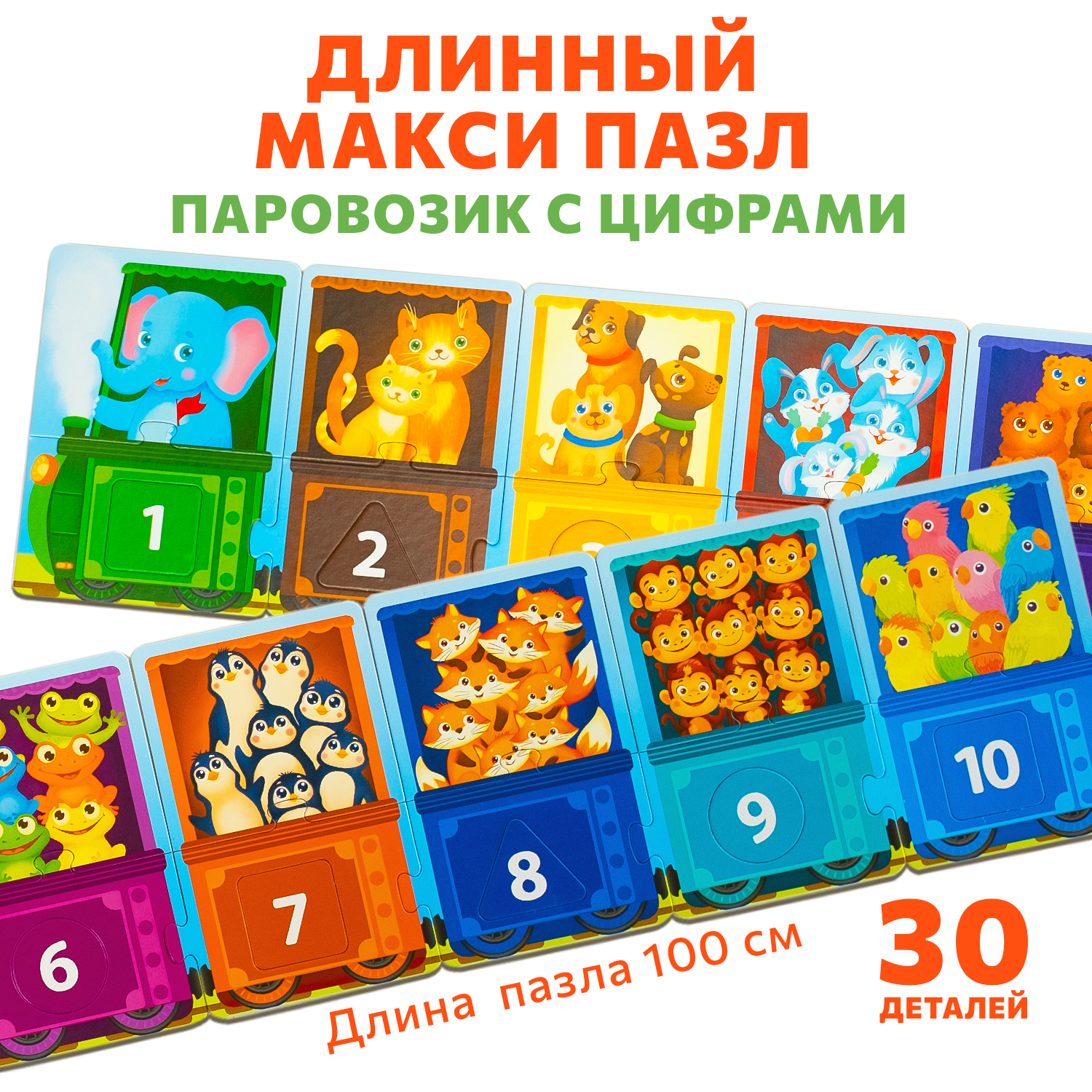 Паровозик с цифрами, картонные пазлы