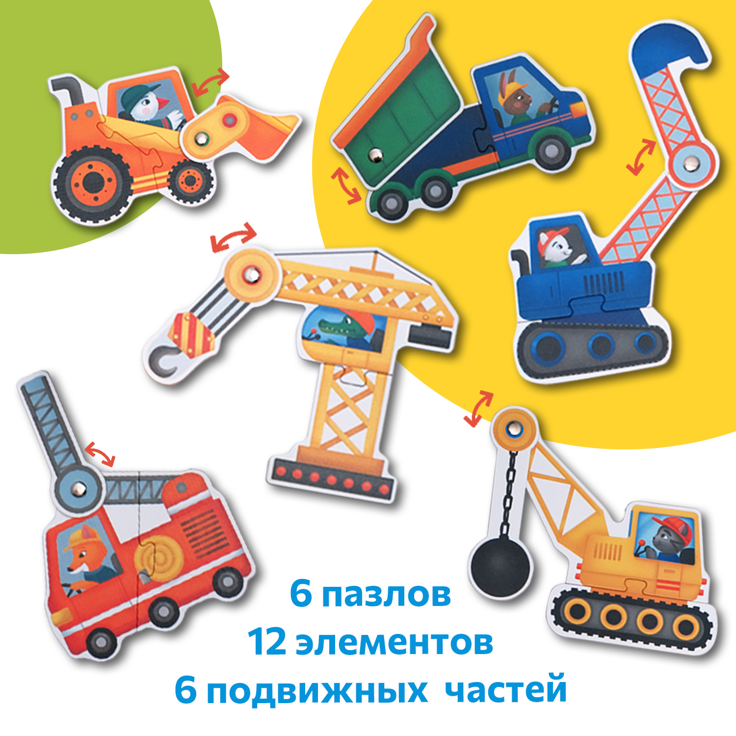 Строительные машинки, подвижные пазлы