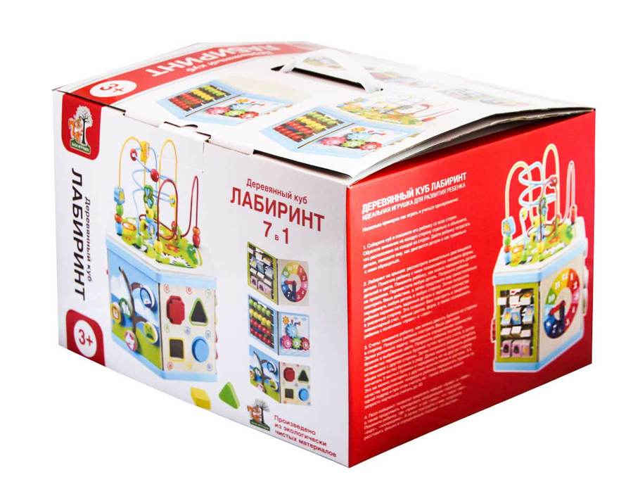 Деревянный куб-лабиринт 7 в 1